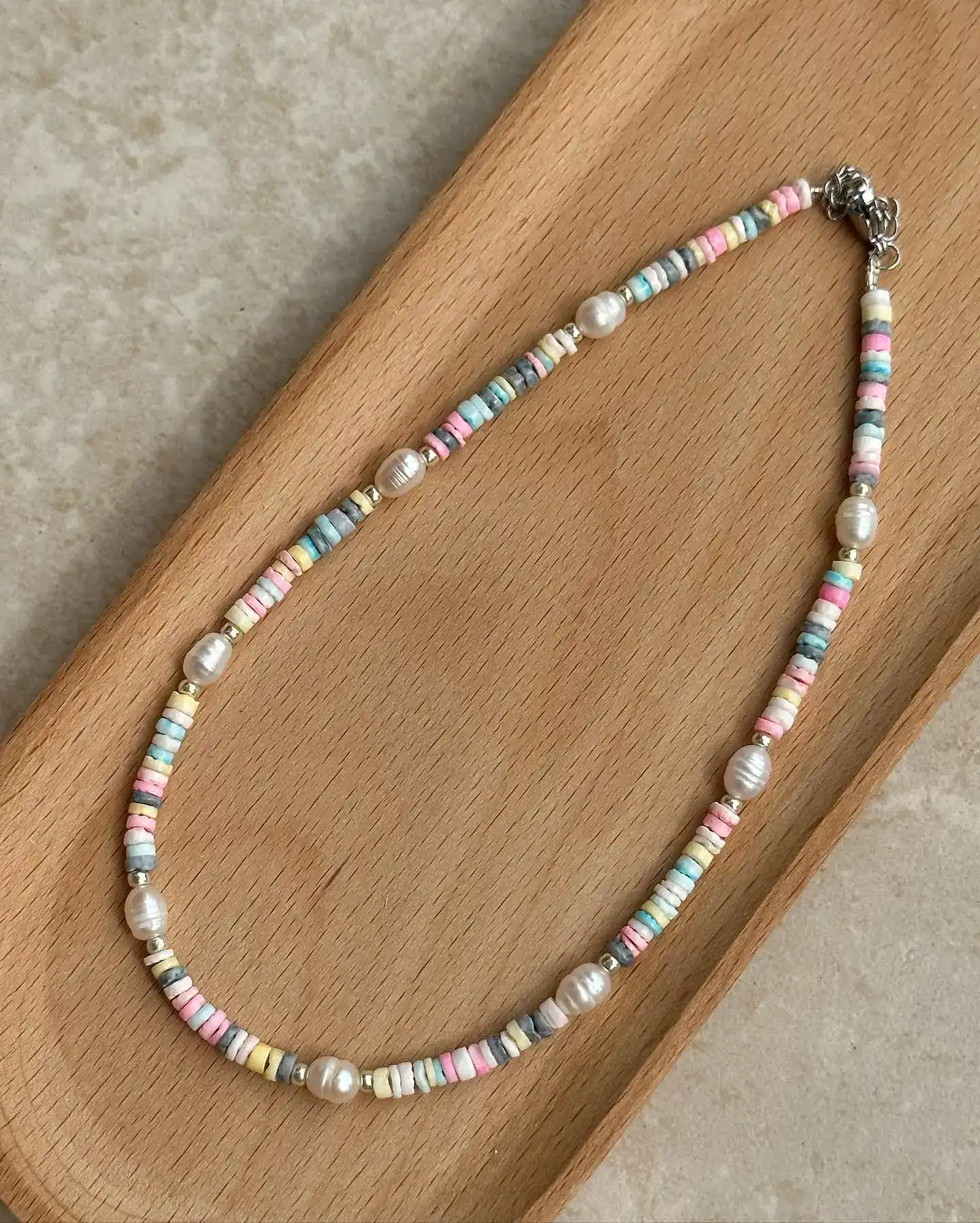 שרשרת כדורי גולדפילד עם חרוזים ותליון ורד